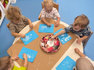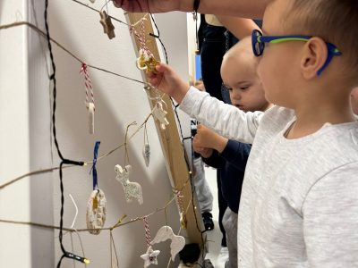 Djeca su izrađivala ukrase za bor od slanog tijesta, bojala ih temperama te zajedno ukrasila bor u zajedničkim prostorijama. Izrađivali su i božićne čestitke, istraživali umjetnim snijegom, uparivali odgovarajuće rukavice te kitili bor od filca. Slikali su čizmice, snijeg, pahuljice i snjegoviće, oblikovali kuglice od slanog tijesta te kalupima izrezivali zvjezdice, boriće i anđele.