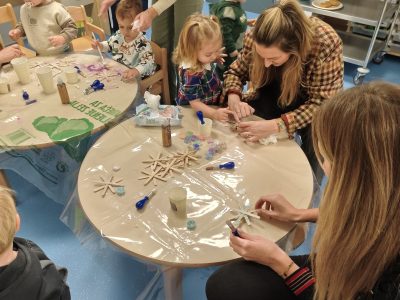 Sve skupine održale su božićne radionice s roditeljima gdje su također izrađivali i ukrašavali ukrase od tijesta, bojali drvene pahuljice te ukrašavali staklenke decoupage tehnikom. Roditelji svih skupina kod kuće su s djecom napravili zimske kućice i snjegoviće koji krase zajedničke prostorije vrtića te su u prostor unijeli posebnu toplinu u ovo doba godine.