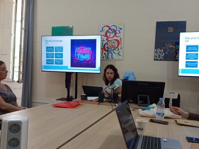 Tijekom grupnog rada sudionici su trebali napraviti aktivnosti na moderan i na tradicionalan način te su prezentirali ostalima. Pomoću raznih upitnika samoprocjenjivali su sebe kao učitelja tj. odgajatelja te su nakon toga raspravljali o tome. Također su tijekom radionice smišljane pjesme o Mallorci pomoću digitalnog alata Perplexity. Završna aktivnost je bila izvanučionička. Voditeljica Alicia osmislila je igru i zadatke u aplikaciji Goose Chase. Aktivnost se provodila u muzejima Fundacio Pilar i Joan Miro te Pueblo Espanol de Palma de Mallorca.